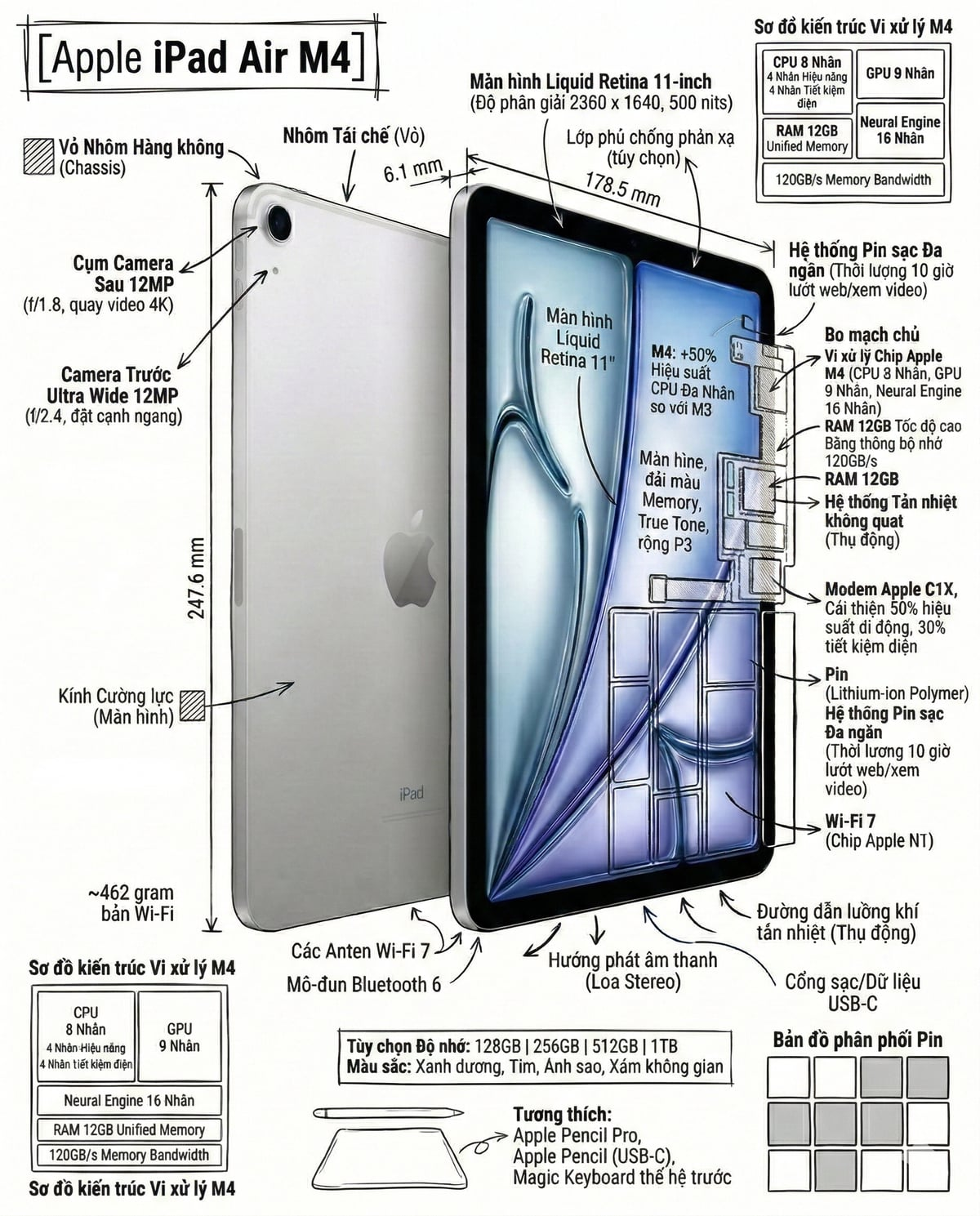 - Sẵn sàng cho AI: Hệ điều hành iPadOS 26 cùng chip M4 tối ưu hoàn hảo cho các tính năng trí tuệ nhân tạo (Apple Intelligence), giúp công việc của bạn trở nên thông minh và nhanh chóng hơn.